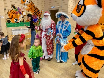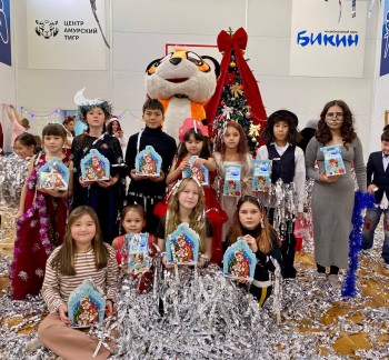 25 декабря сказочный утренник собрал у новогодней ёлки малышей в детском саду «Тигрёнок», 26 декабря — в средней школе села. На обоих праздниках яркий маскот Амурчик вручал сладкие новогодние подарки от Центра «Амурский тигр» малышам и подросткам, а также помогал сотрудникам национального парка «Бикин» награждать победителей конкурсов новогодней игрушки.